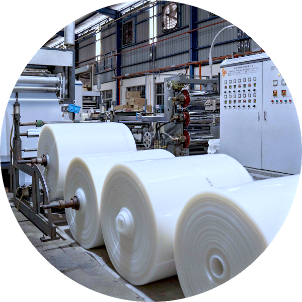 Melting and forming PP material into sheets or rolls, ready for thermoforming production.